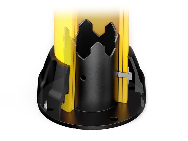 O sistema Base Defender oferece proteção total aos parafusos de fixação da base redonda, impedindo danos causados por colisões ou passagem de veículos.