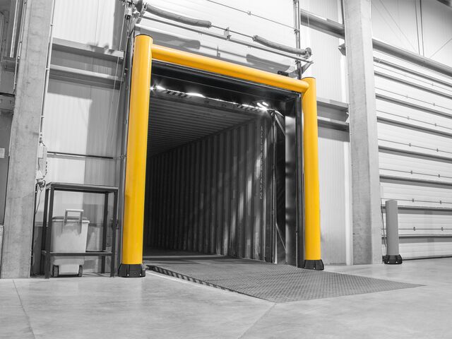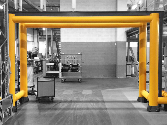 A Trave de Proteção GOAL POST 250R, da linha FLEX IMPACT®, foi projetada para proteger portões, marquises, passagens elevadas e pontes contra colisões de empilhadeiras, caminhões, ônibus e plataformas aéreas.