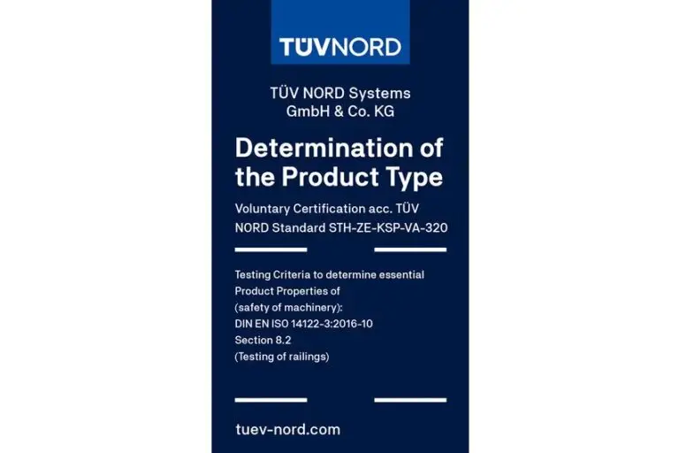 O Single Gate com abertura de até 870 mm foi submetido a ensaios estruturais rigorosos e está em conformidade com a EN 14122-3 (Capítulo 8.2), referente aos requisitos de resistência mecânica.
